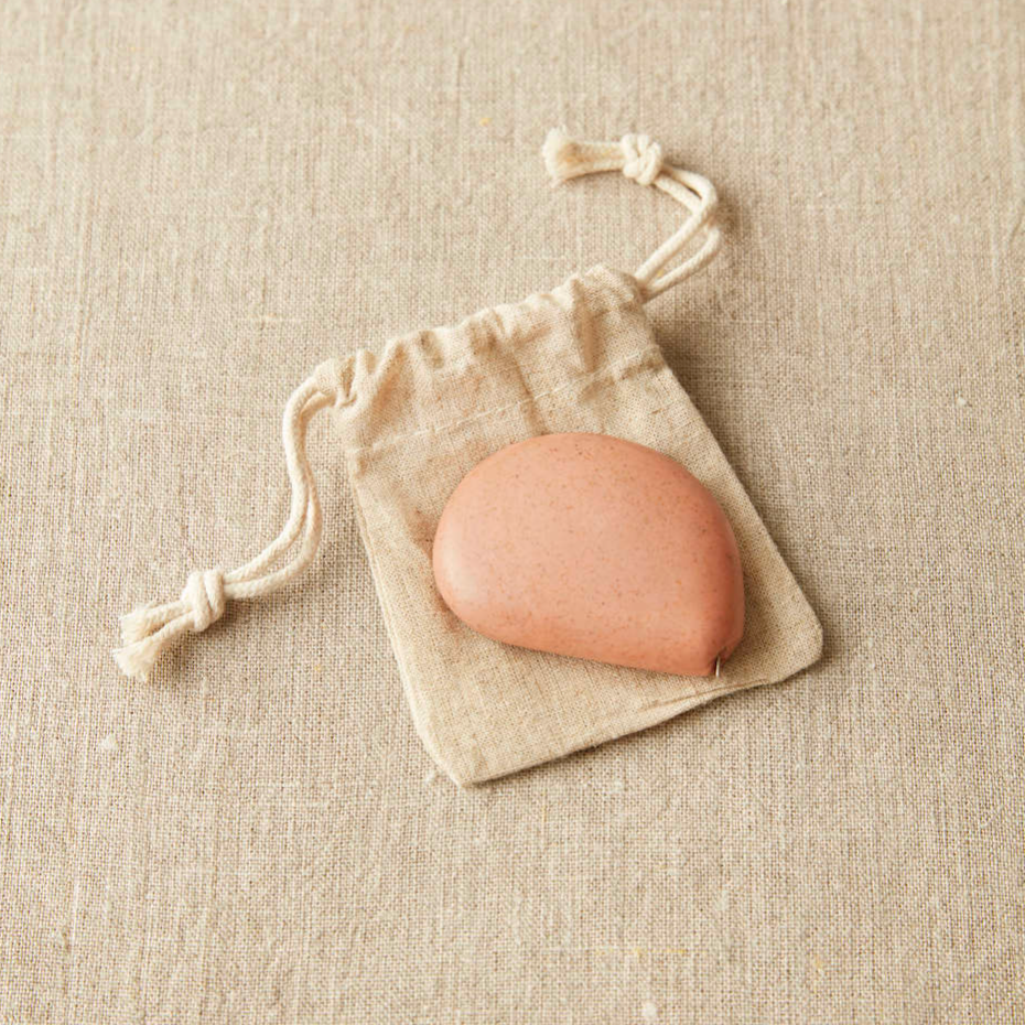 Each tape measure comes tucked in a reusable linen drawstring bag — perfect for storing with your other notions or bringing along to stitch-ins and community meet-ups.